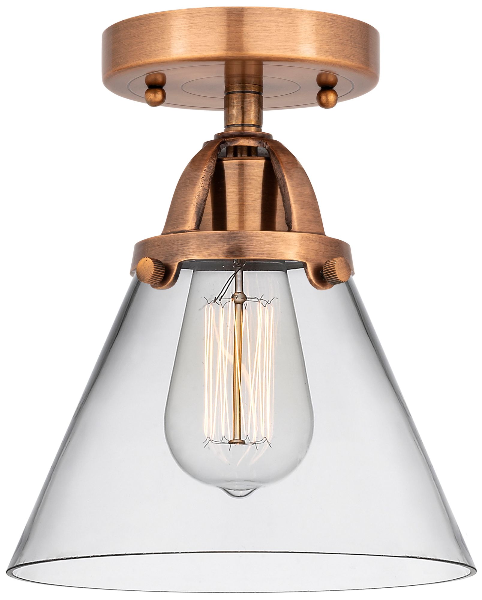 Nouveau 2 Cone 8" Semi-Flush Mount - Antique Copper - Clear Shade