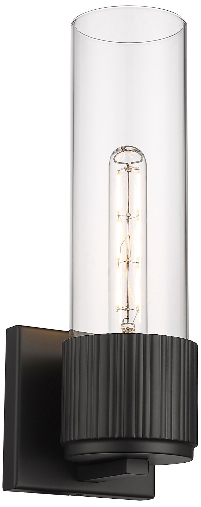 Bolivar 15" High Matte Black Sconce With Clear Glass Shade