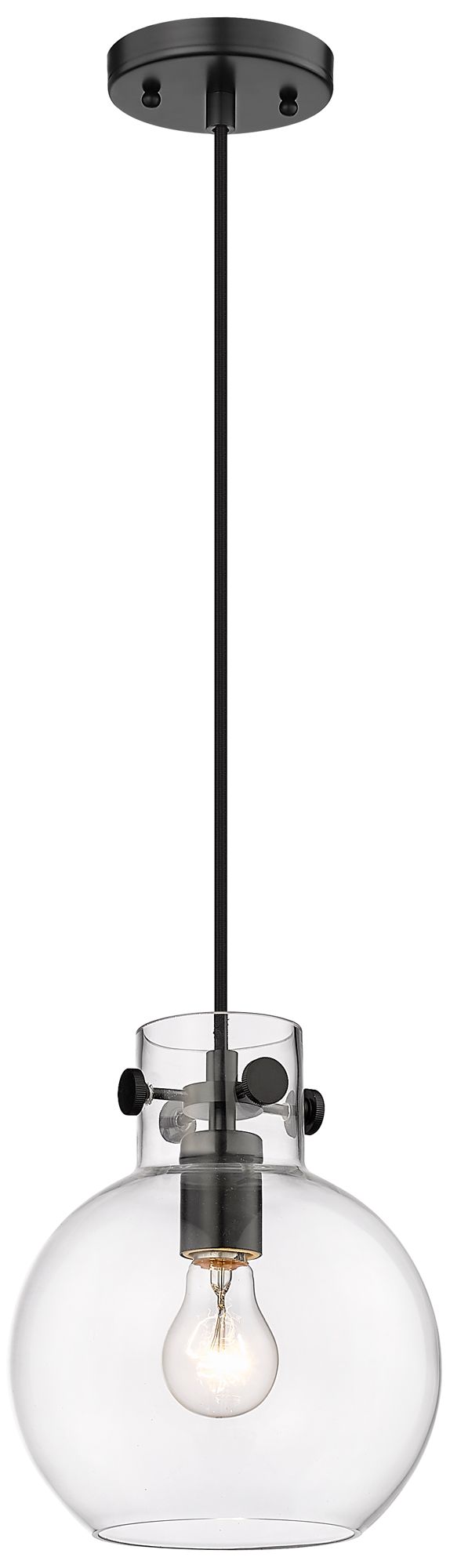 Newton Sphere 8" Wide Cord Hung Matte Black Pendant With Clear Shade
