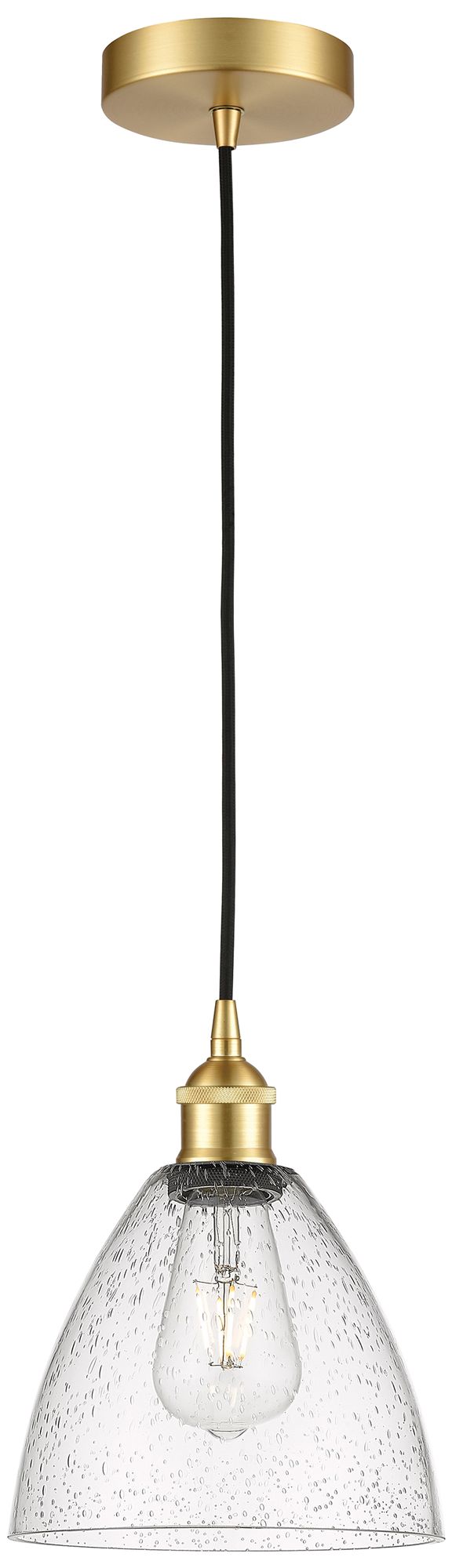 Edison Dome 8" Satin Gold Cord Hung Mini Pendant w/ Seedy Shade