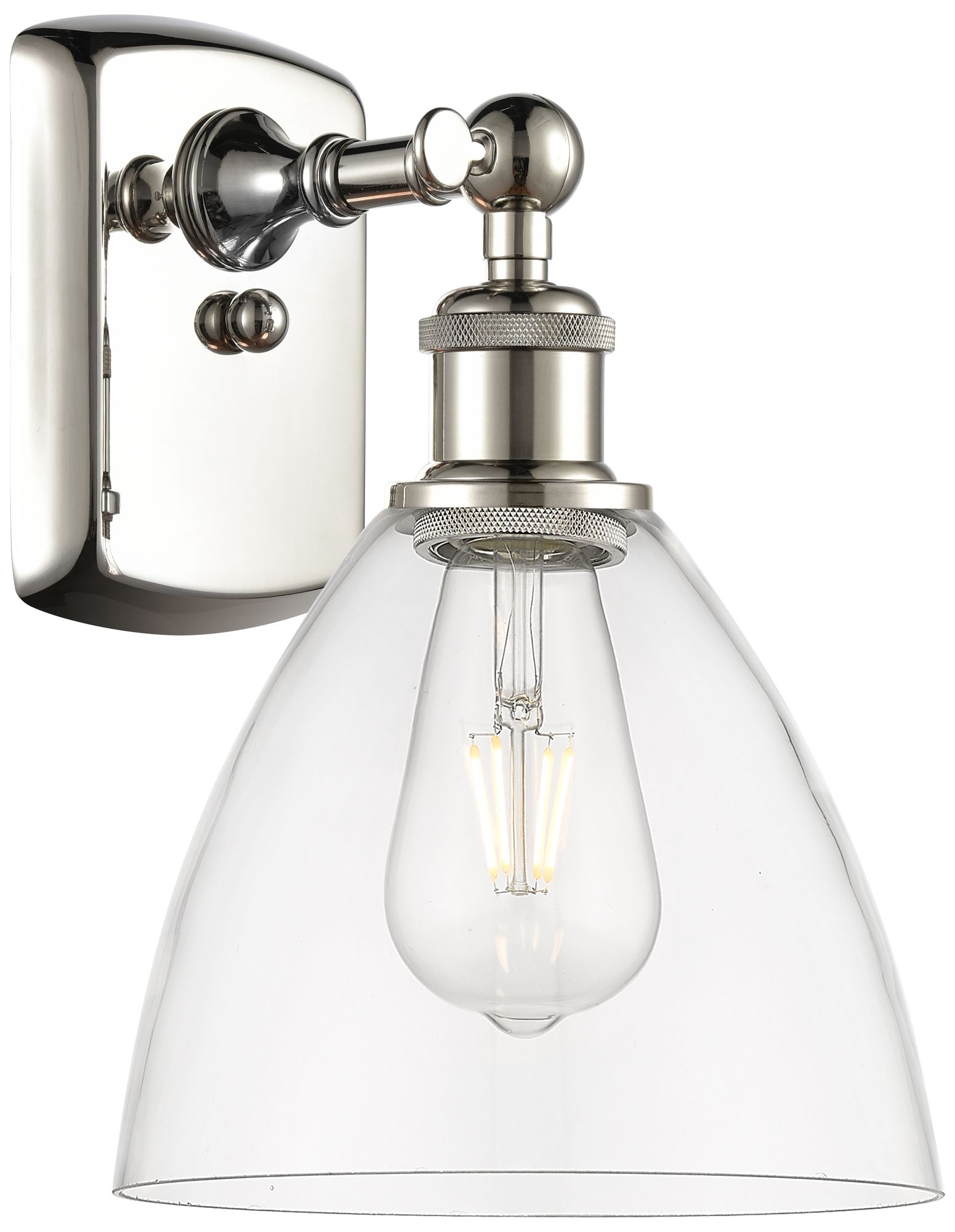 Bristol Glass 7.5" 8" Incandescent Sconce - Nickel Finish - Clear