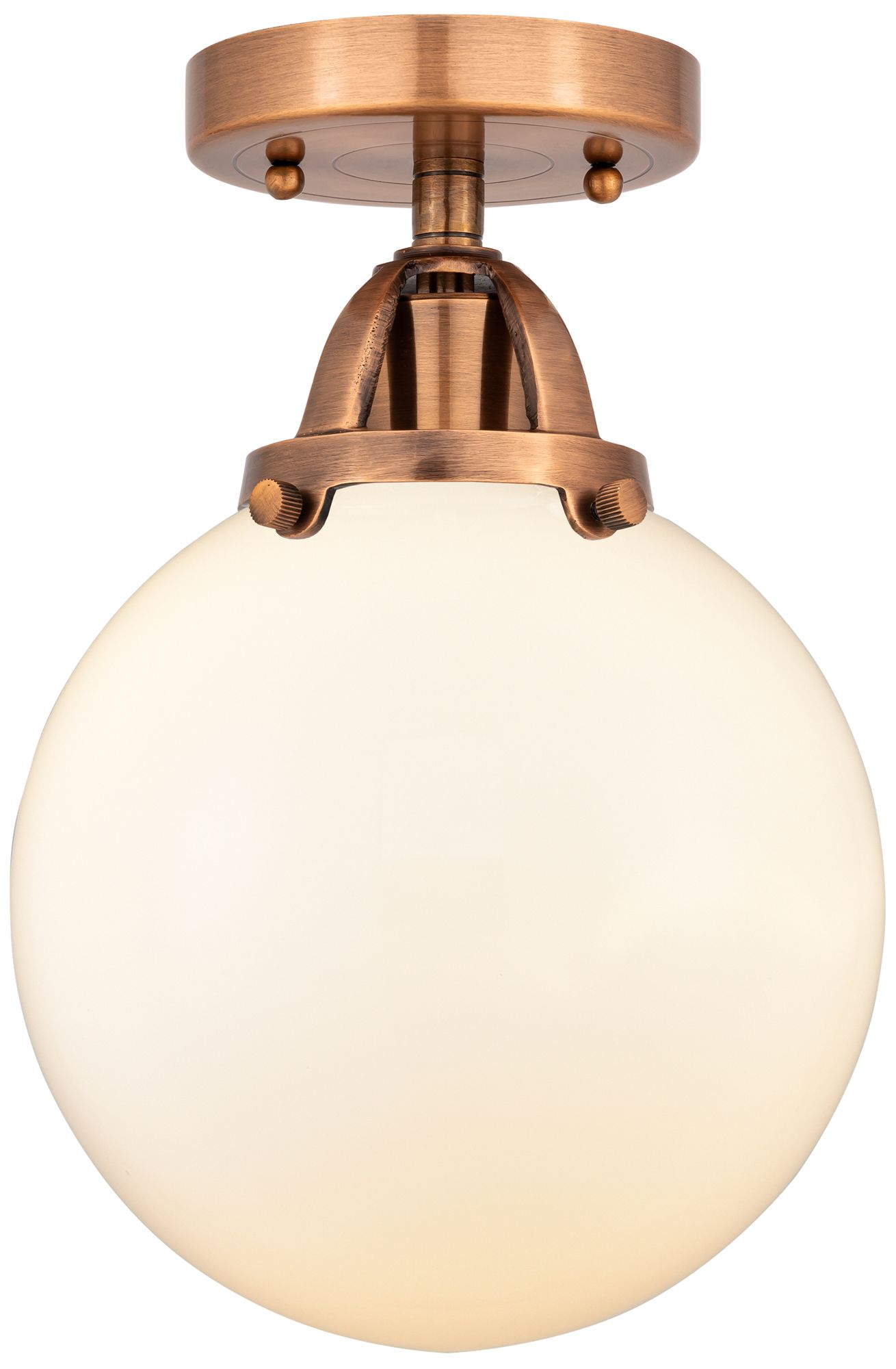 Nouveau 2 Beacon 8" Semi-Flush Mount - Antique Copper - Matte White Sh