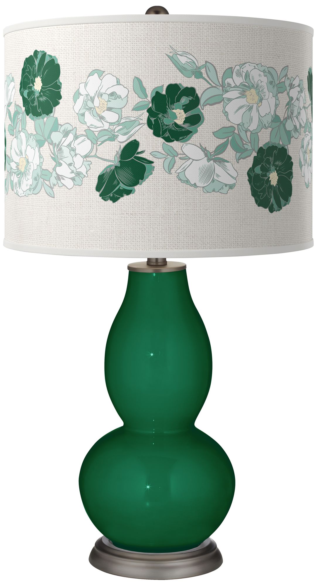 Color Plus Double Gourd 29 1/2" Rose Bouquet Greens Glass Table Lamp