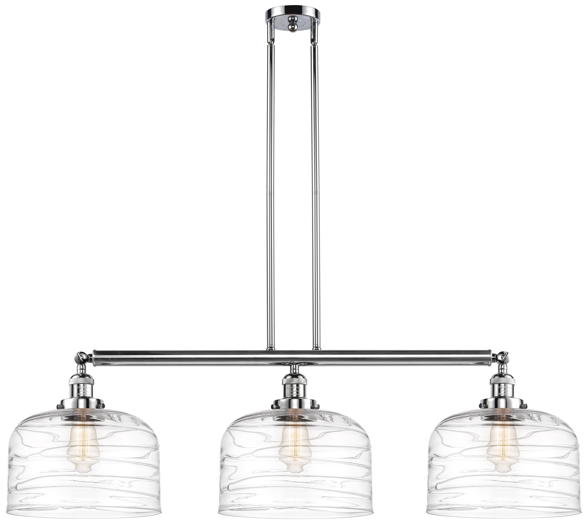 Bell 3 Light 42" Island Light - Polished Chrome - Clear Deco Swirl Sh