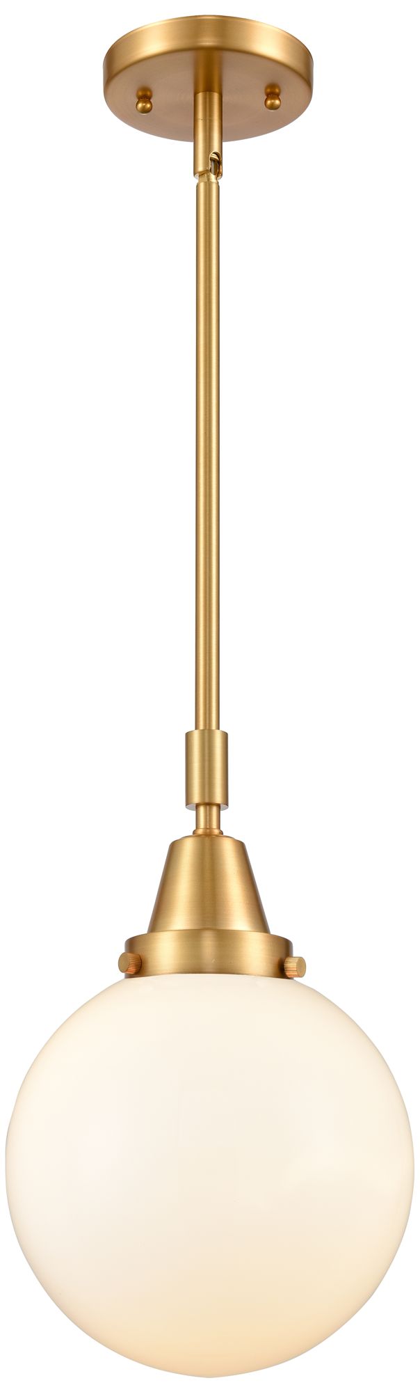 Beacon 8" Wide Satin Gold Mini Pendant with White Glass