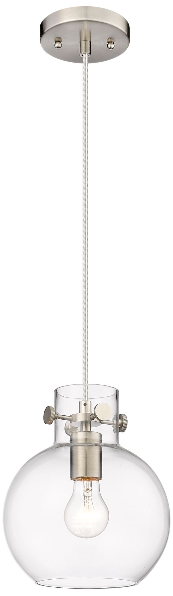Newton Sphere 8" Wide Cord Hung Satin Nickel Pendant With Clear Shade