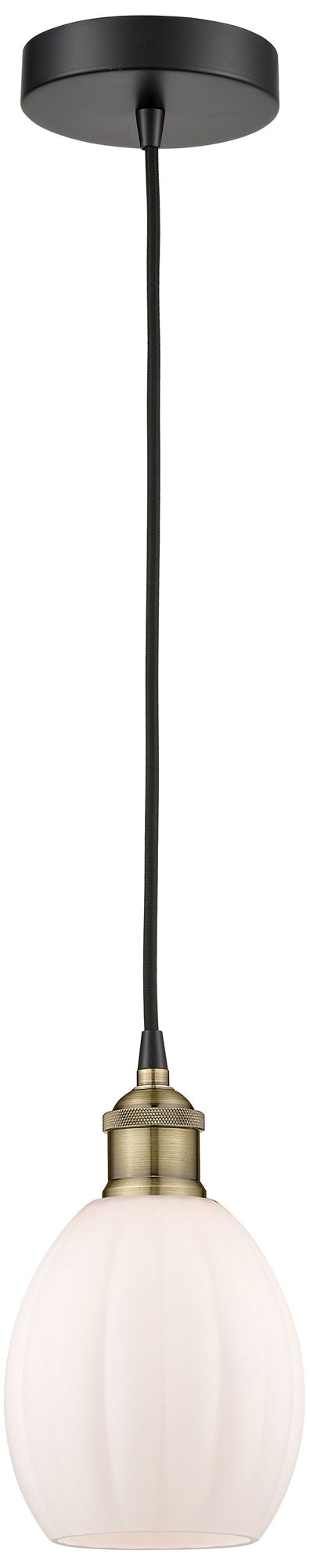 Eaton 5.5"W Black Brass Corded Mini Pendant w/ Matte White Shade