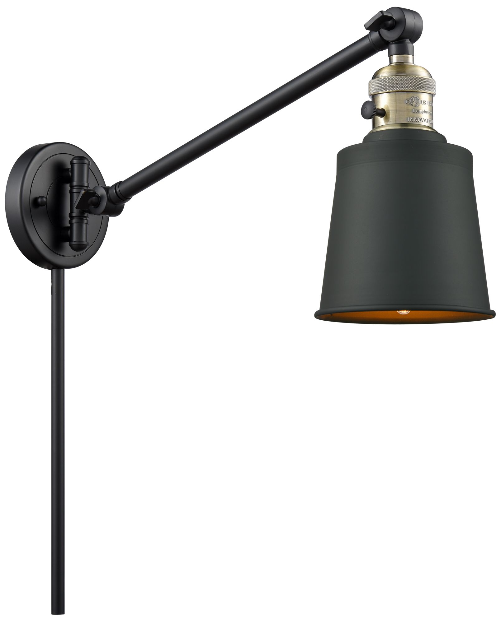 Addison 8" Black Antique Brass LED Swing Arm With Matte Black Shade