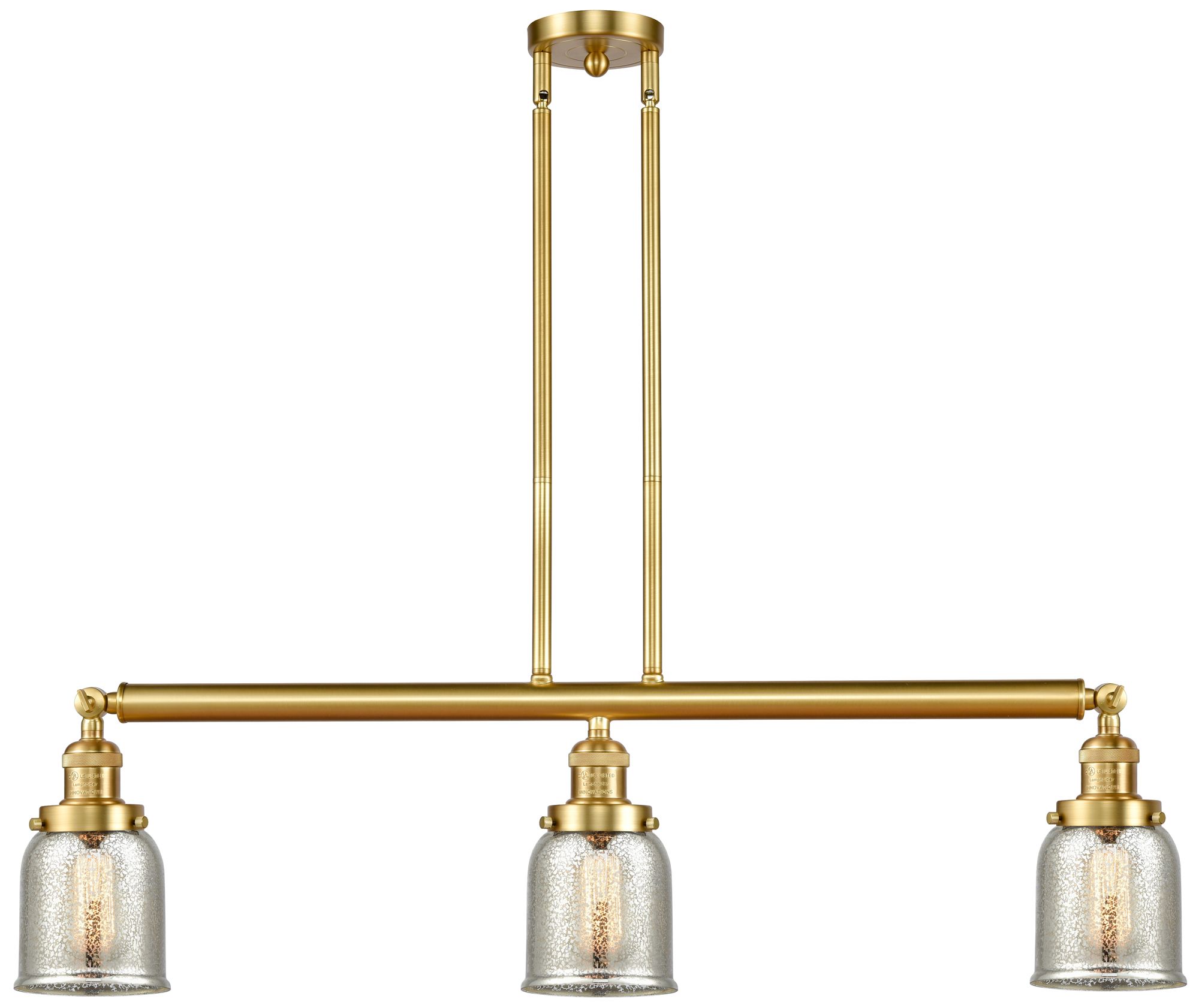 Bell 37.5"W 3 Light Gold Stem Hung Island Light w/ Mercury Shade