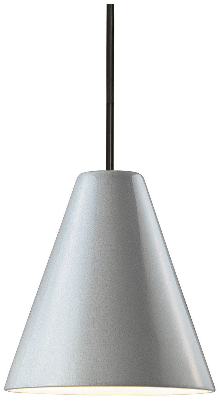 Radiance 9.5" Wide Matte Black White Crackle Cone Stemmed LED Pendant