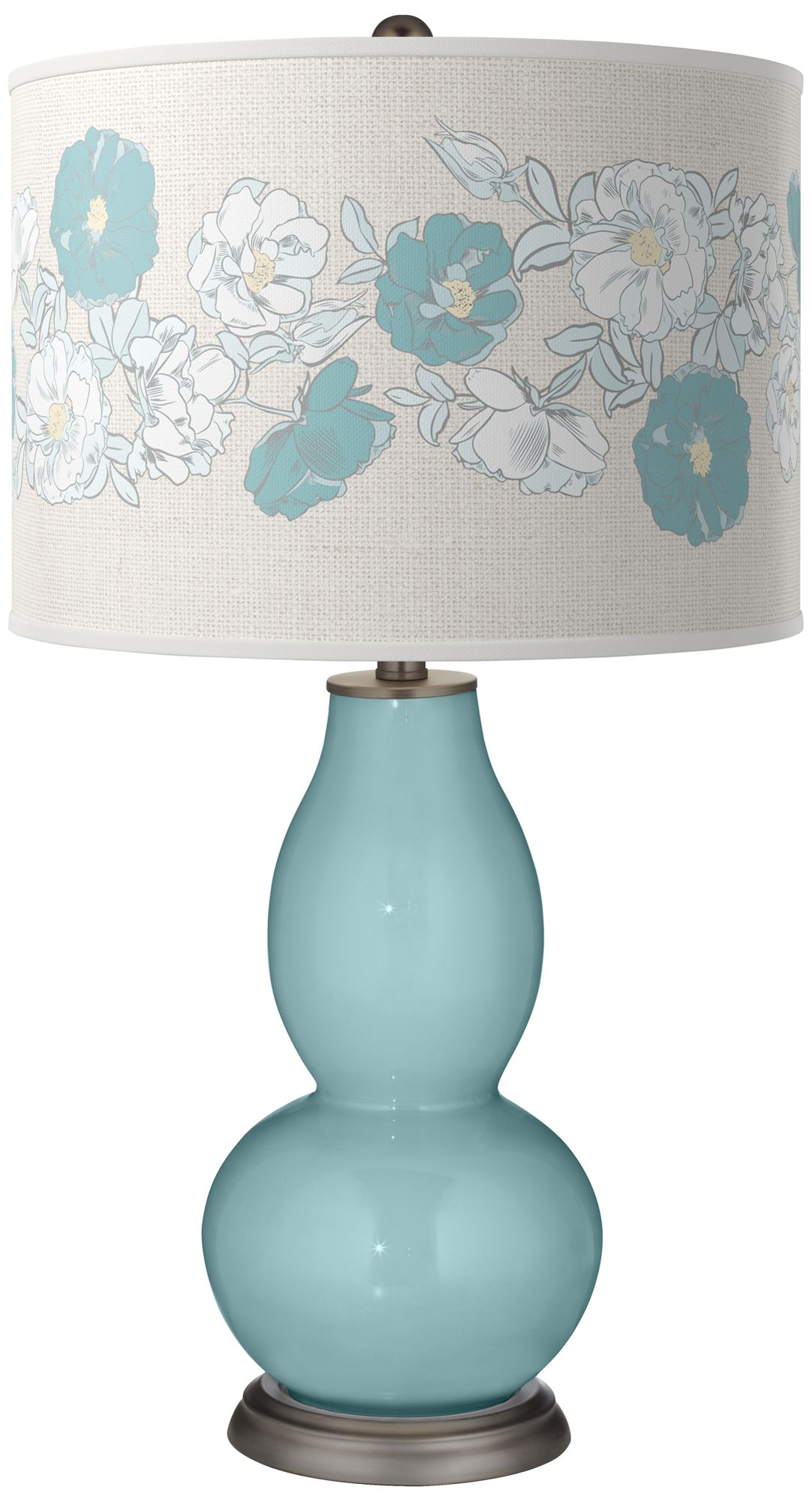 Color Plus Double Gourd 29 1/2" Rose Bouquet Raindrop Blue Table Lamp