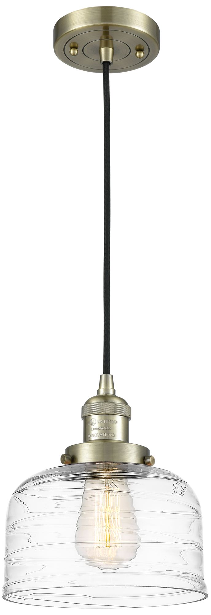 Franklin Bell 8" Wide Antique Brass Corded Mini Pendant w/ Deco Swirl