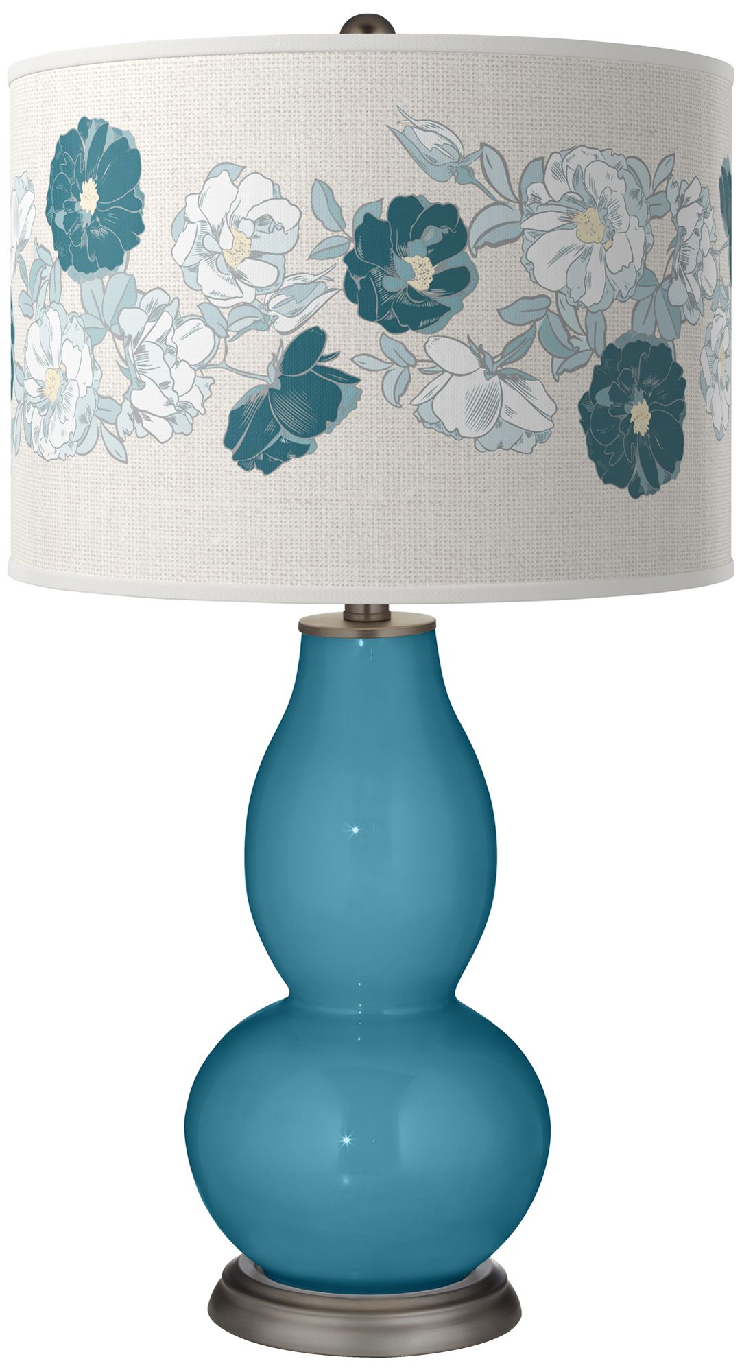 Color Plus Double Gourd 29 1/2" Rose Bouquet Great Falls Blue Lamp