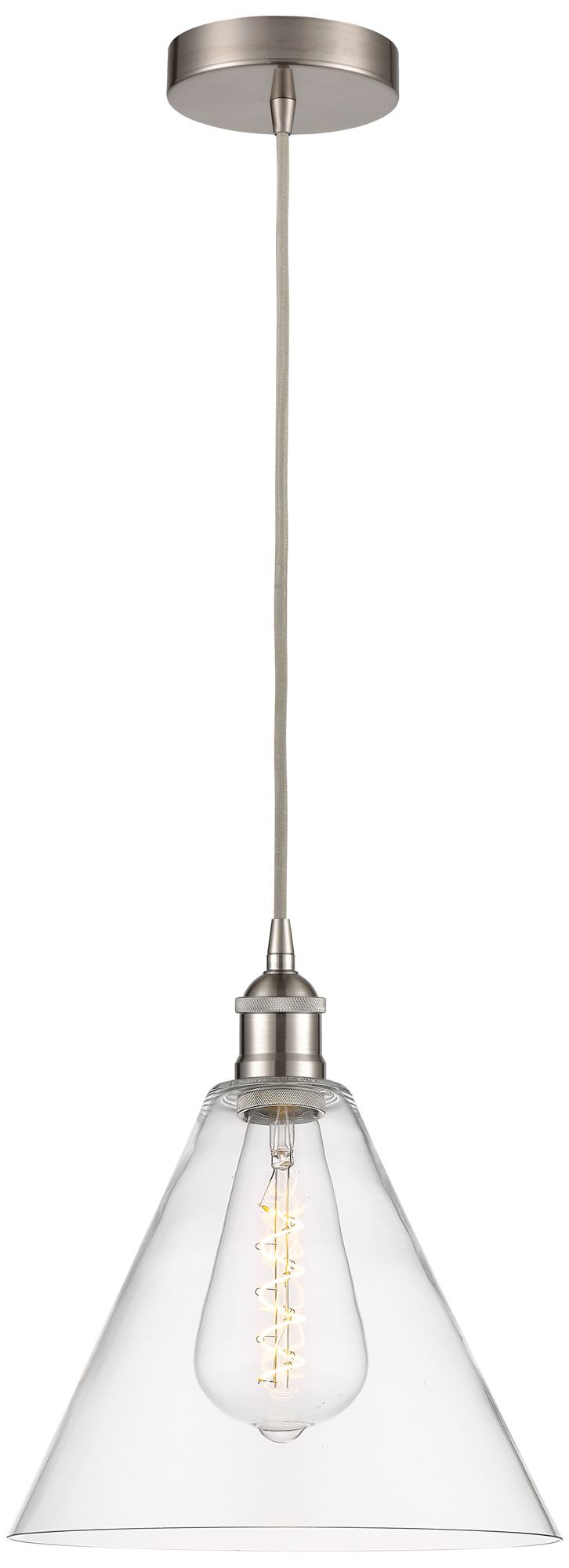Edison Glass Cone 12" Brushed Nickel Corded Mini Pendant w/ Clear Shad