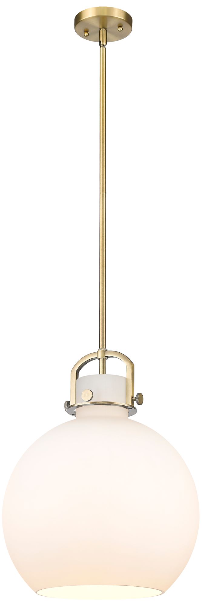 Newton Sphere 14" Wide Stem Hung Brushed Brass Pendant With White Shad