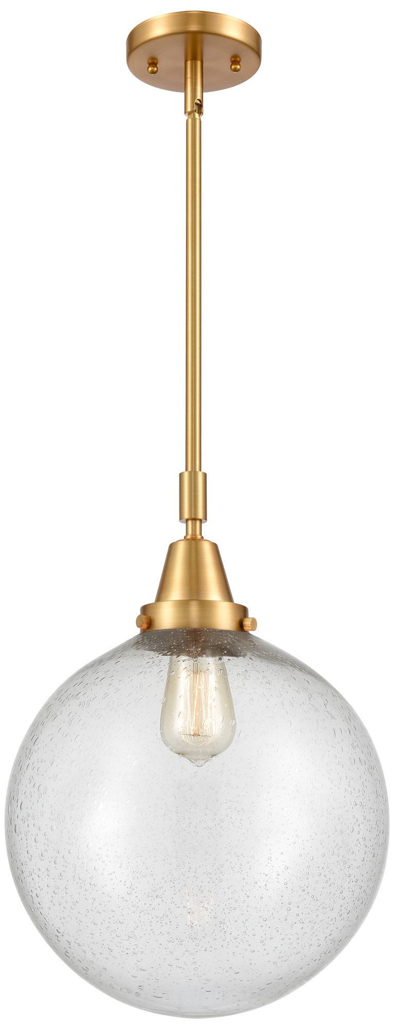 Caden Beacon 12" Wide Satin Gold Stem Hung Mini Pendant w/ Seedy Shade