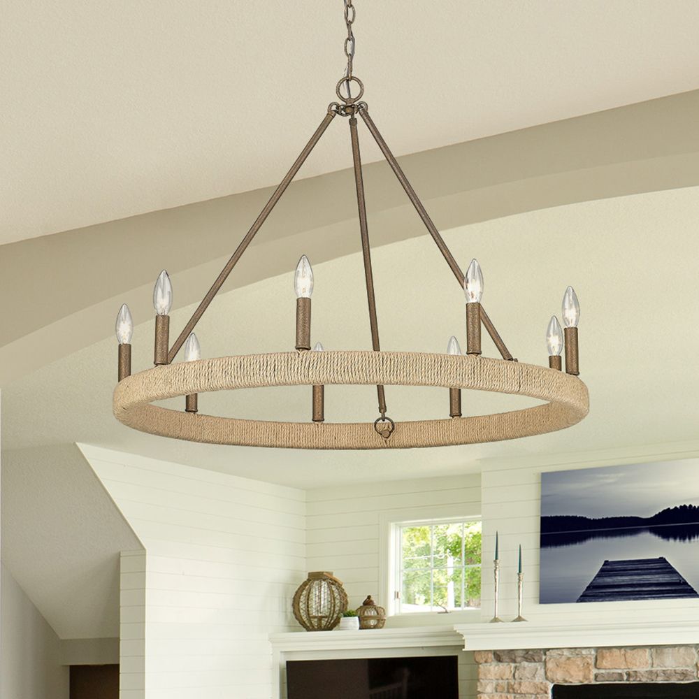 Golden Lighting Yates 33" Hemp and Chestnut Candleabra Ring Chandelier