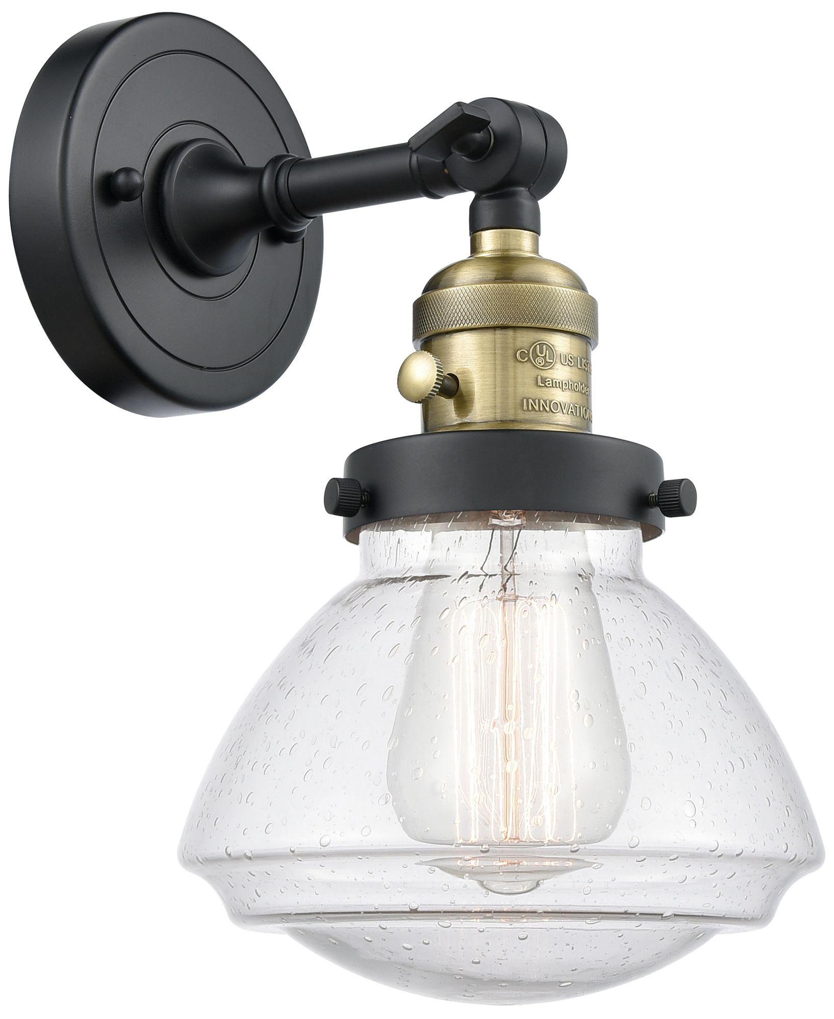 Olean 7.75" High Black Brass Sconce w/ Seedy Shade