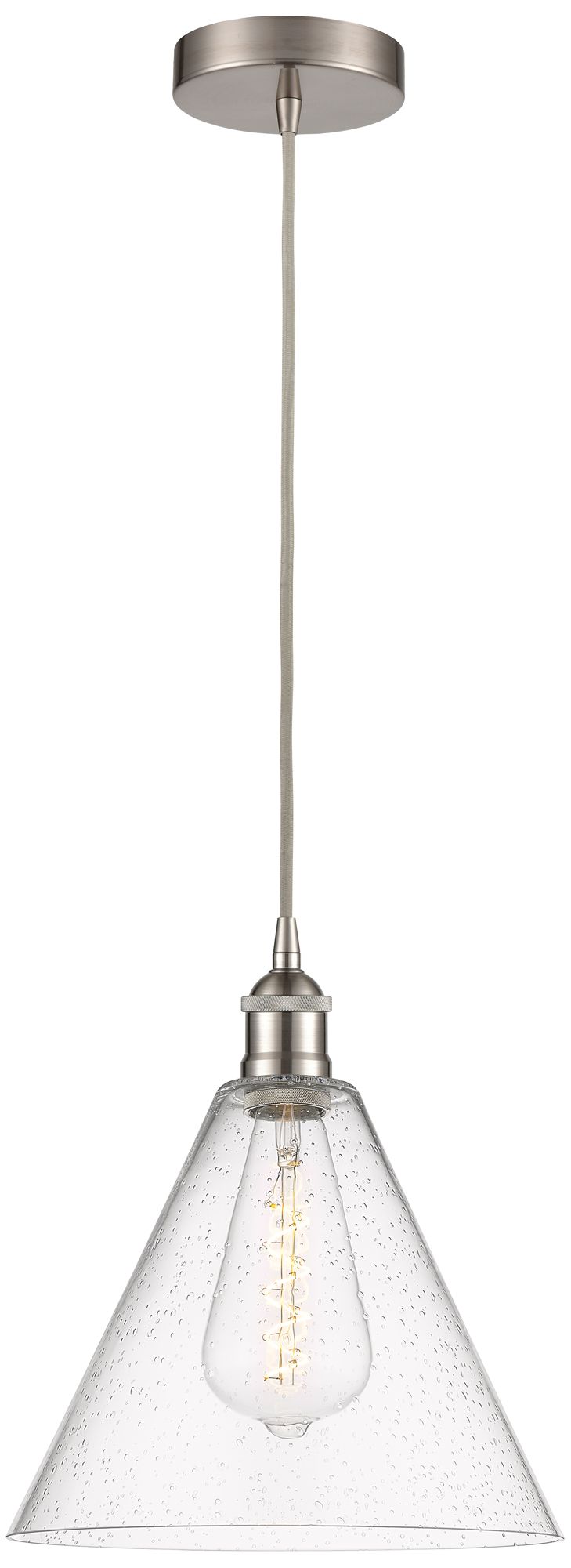 Edison Glass Cone 12" Brushed Nickel Corded Mini Pendant w/ Seedy Shad