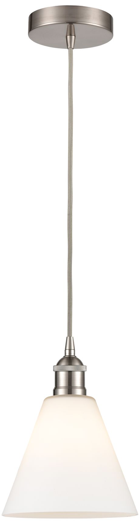 Edison Glass Cone 8" Brushed Nickel Corded Mini Pendant w/ White Shade