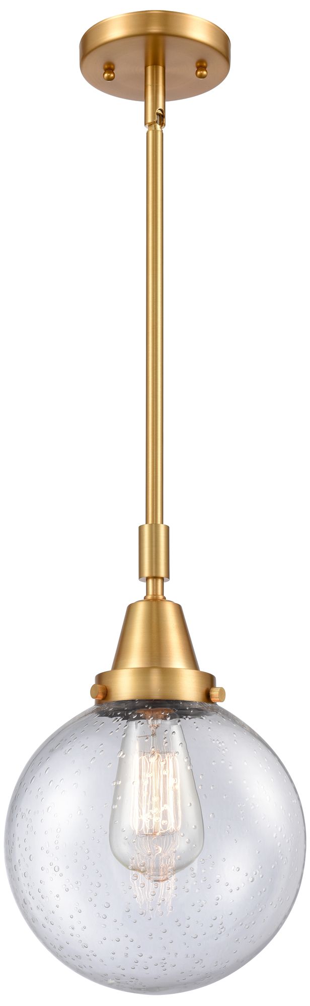Caden Beacon 8" Wide Satin Gold Stem Hung Mini Pendant w/ Seedy Shade