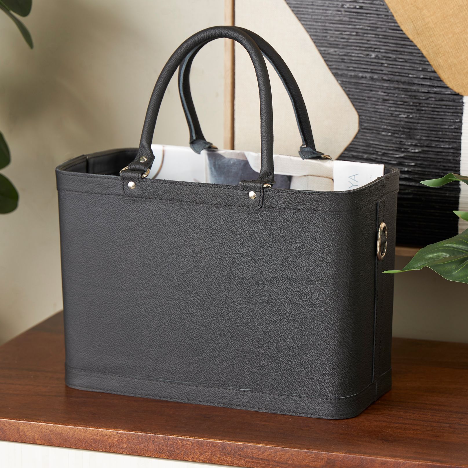 Black Leather Modern Magazine Holder, 15" x 9" x 17"
