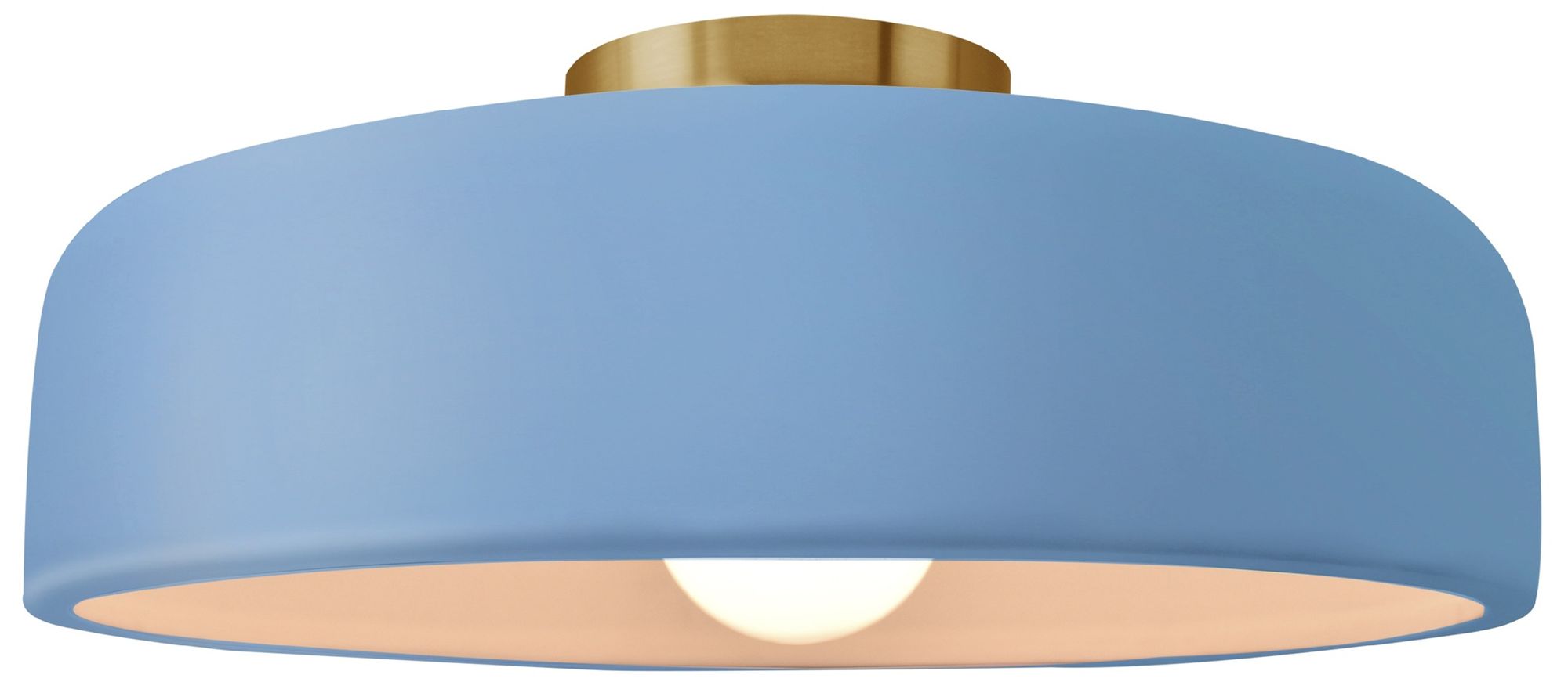 Radiance 13"W Sky Blue Frame Brushed Brass Metal Medium Spire Semi.Flu