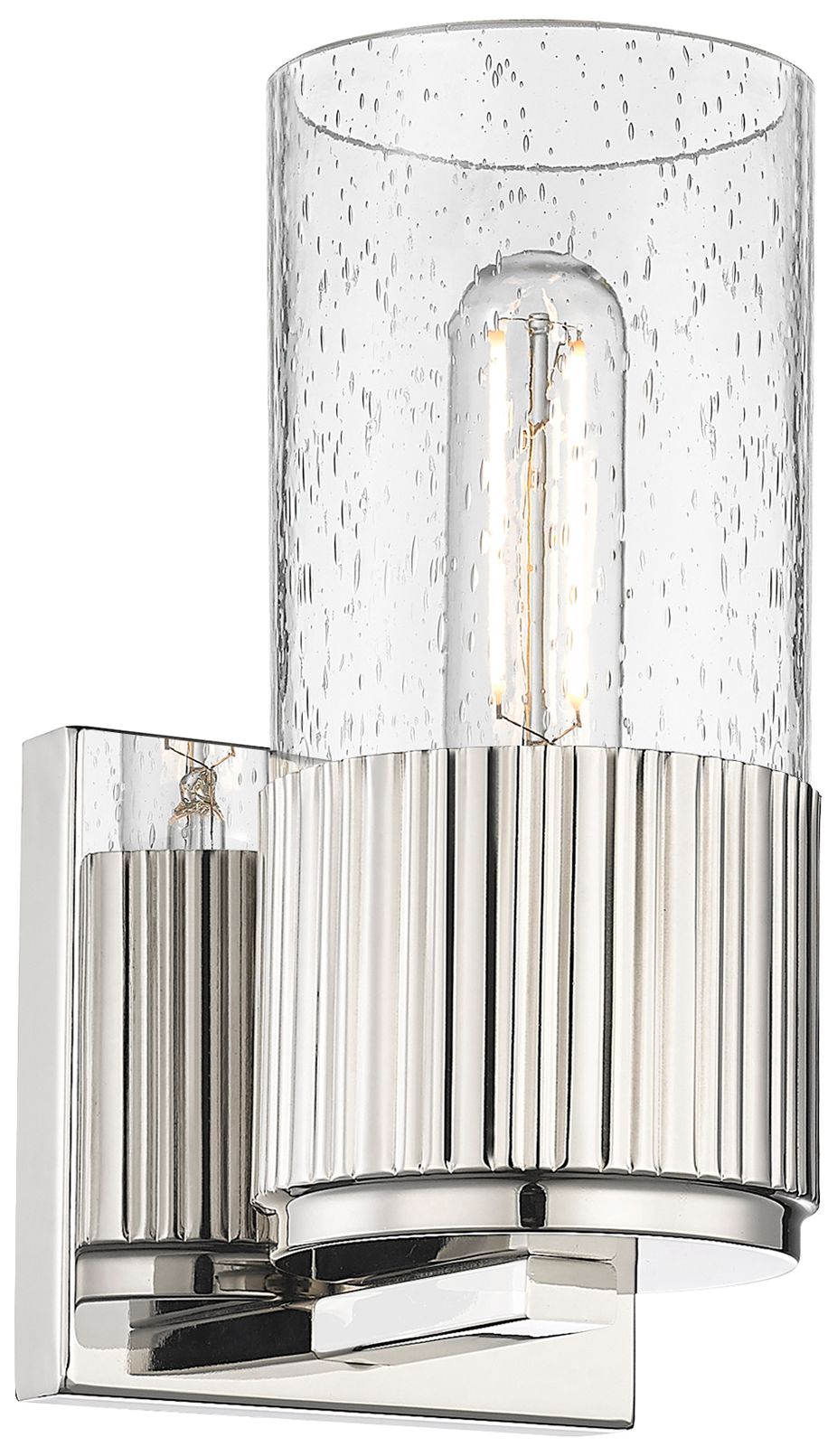 Bolivar 7.5" High Polished Nickel Sconce With Seedy Glass Shade