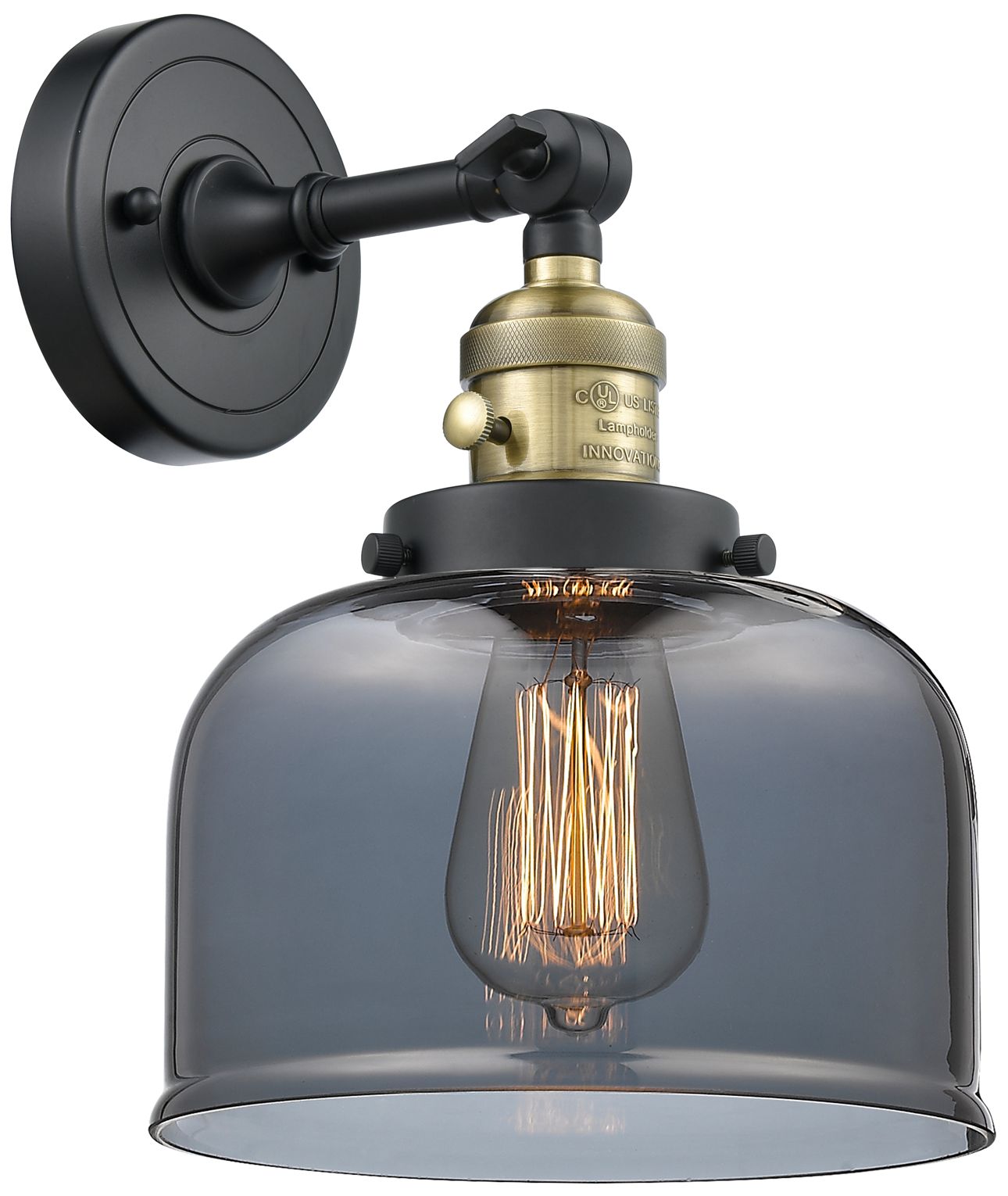 Bell 12" High Black Brass Sconce w/ Plated Smoke Shade
