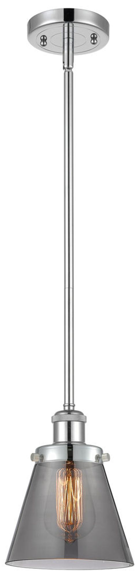 Ballston Urban Cone 6" Chrome Stemmed Mini Pendant w/ Smoke Shade