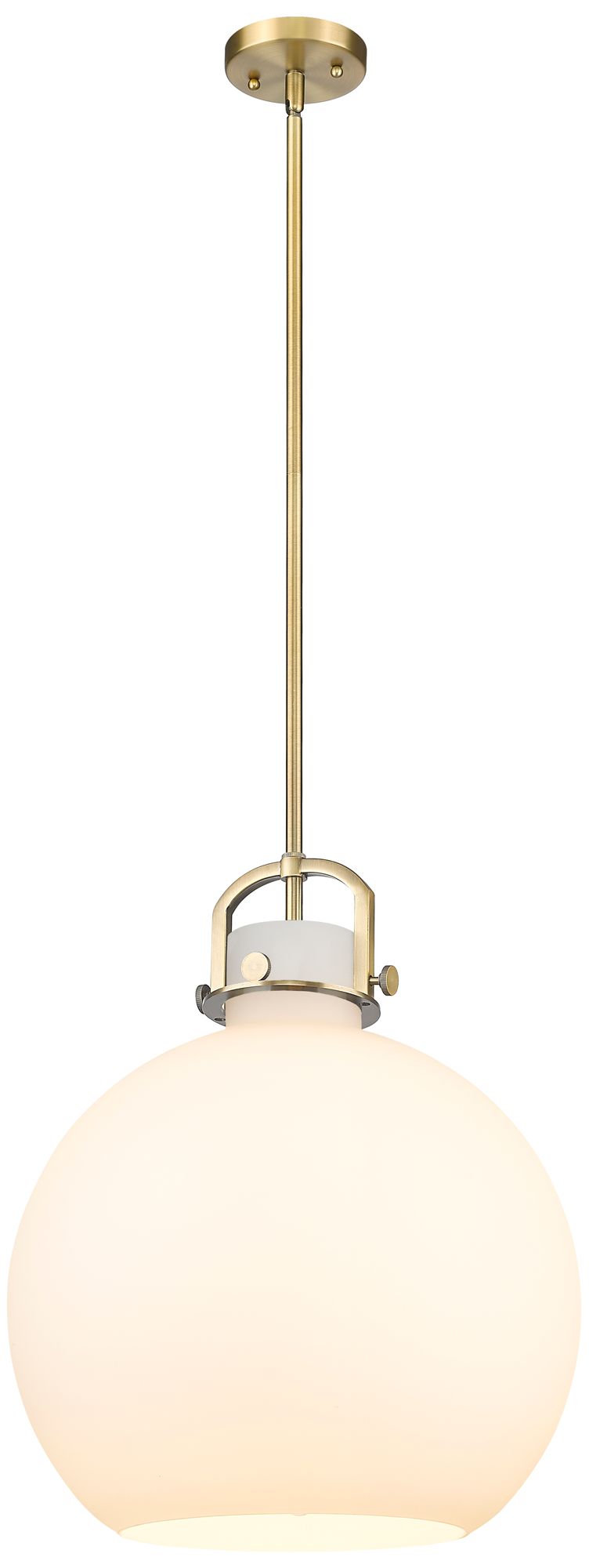 Newton Sphere 16" Wide Stem Hung Brushed Brass Pendant With White Shad