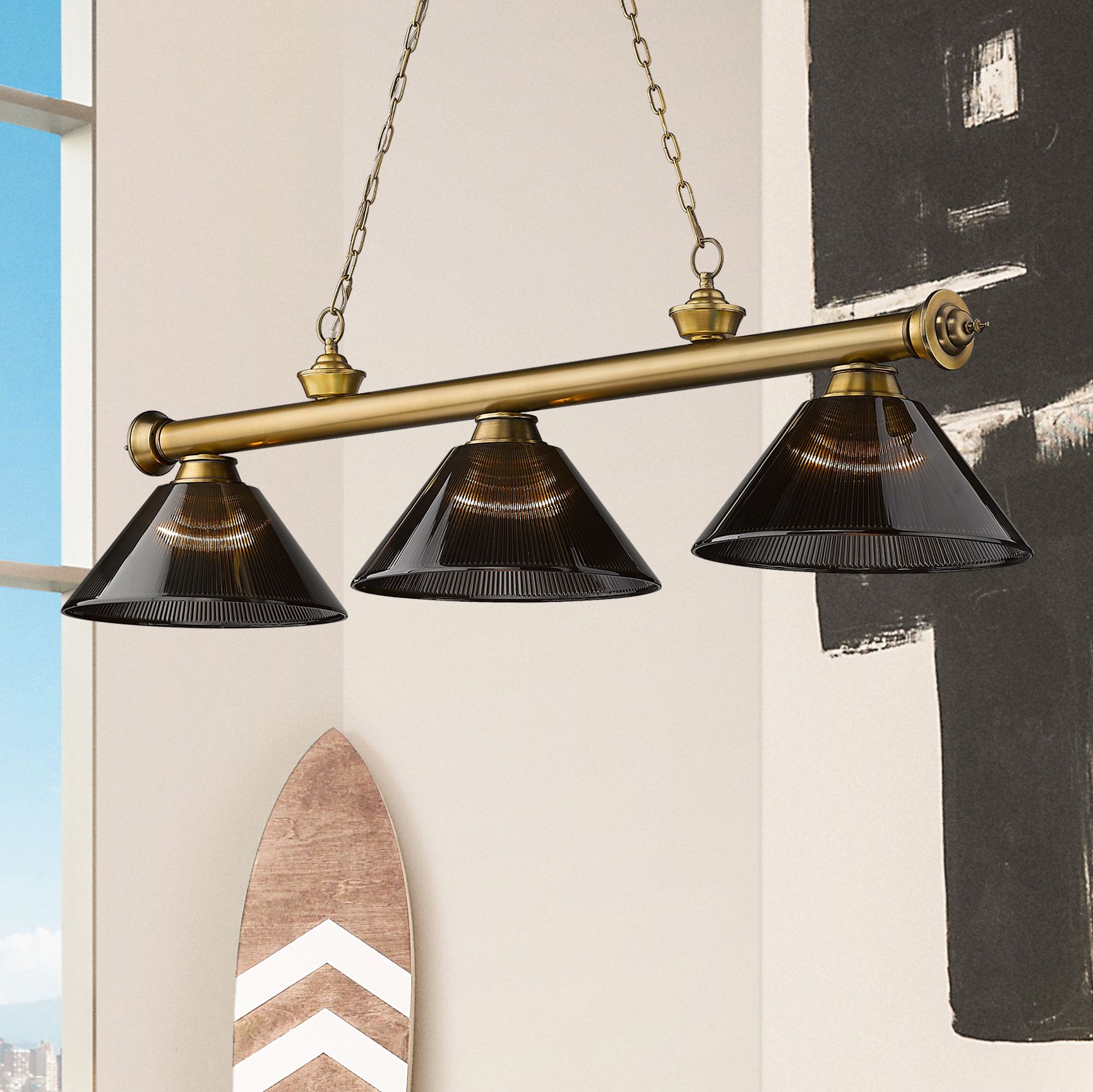 Cordon 57 1/4" Wide Rubbed Brass 3-Light Billiard Pendant