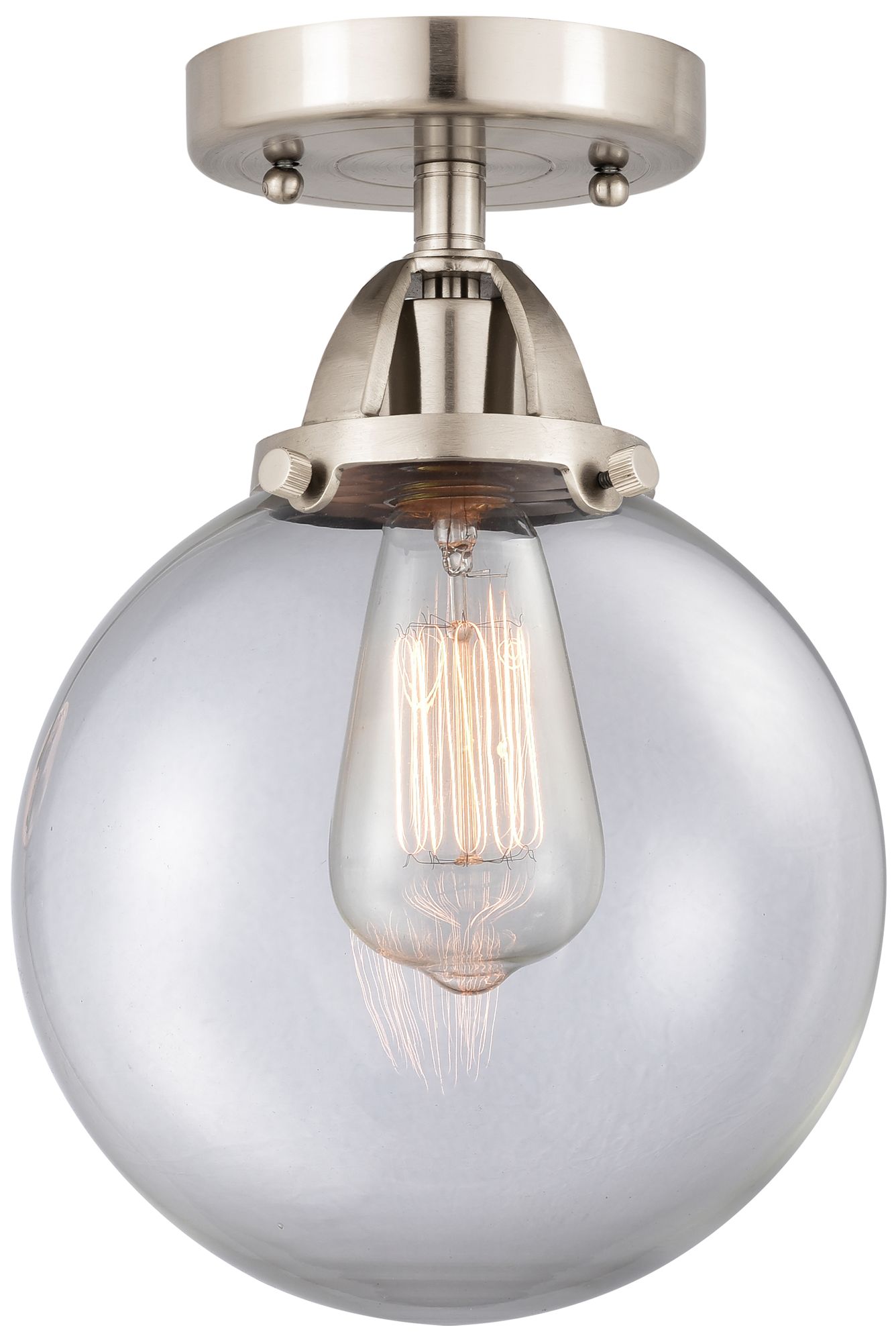 Nouveau 2 Beacon 8" Semi-Flush Mount - Brushed Satin Nickel - Clear Sh