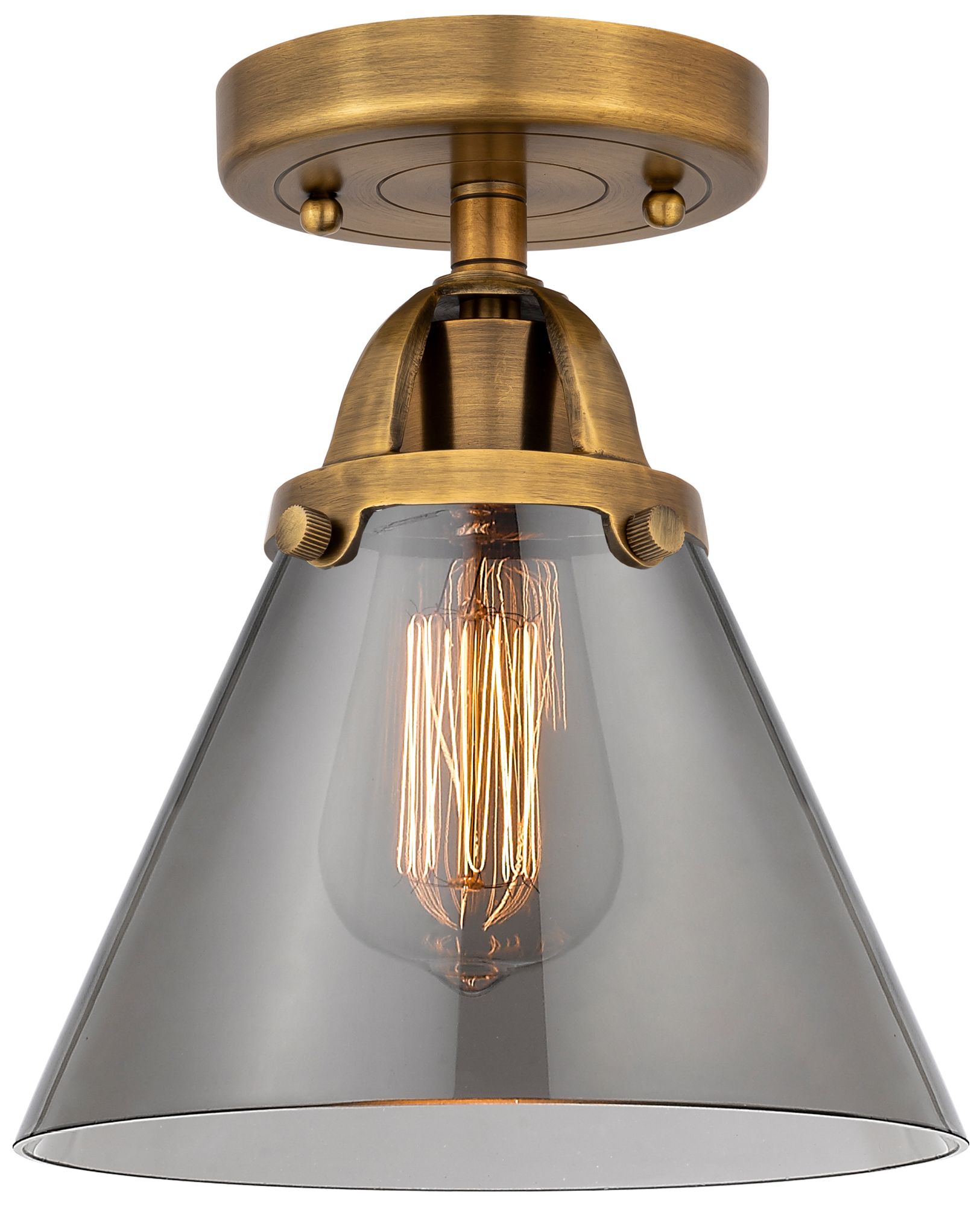 Nouveau 2 Cone 8" Semi-Flush Mount - Brushed Brass - Plated Smoke Shad
