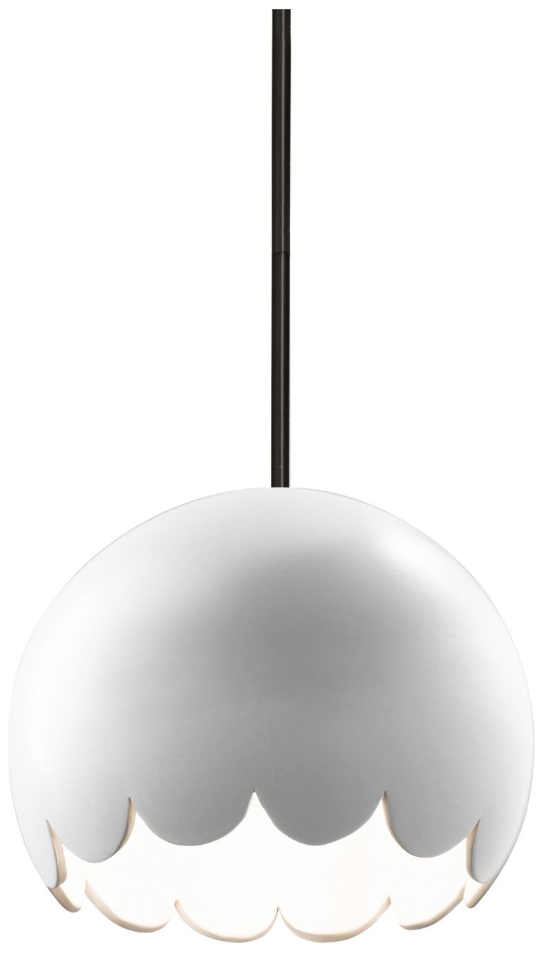 Radiance 9" Wide Matte Black Gloss White Scallop Stemmed LED Pendant