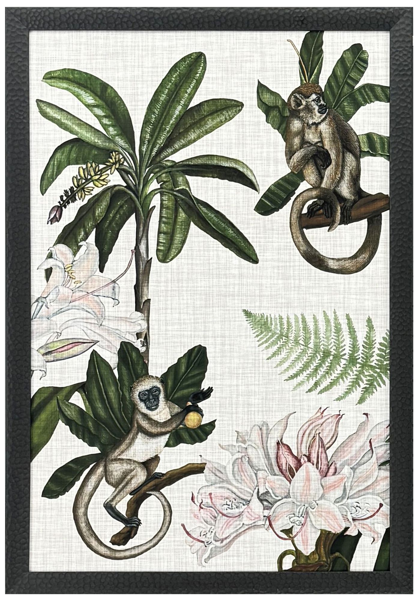 Monkey on Linen I 27"W x 39"H Framed Wall Art