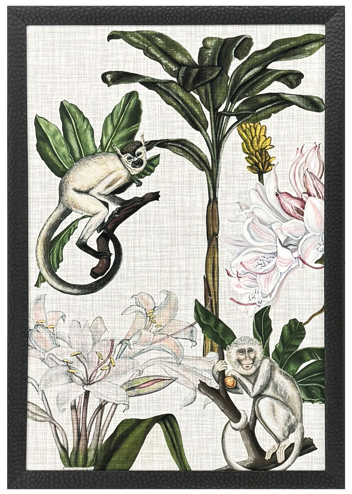 Monkey on Linen II 27"W x 39"H Framed Wall Art