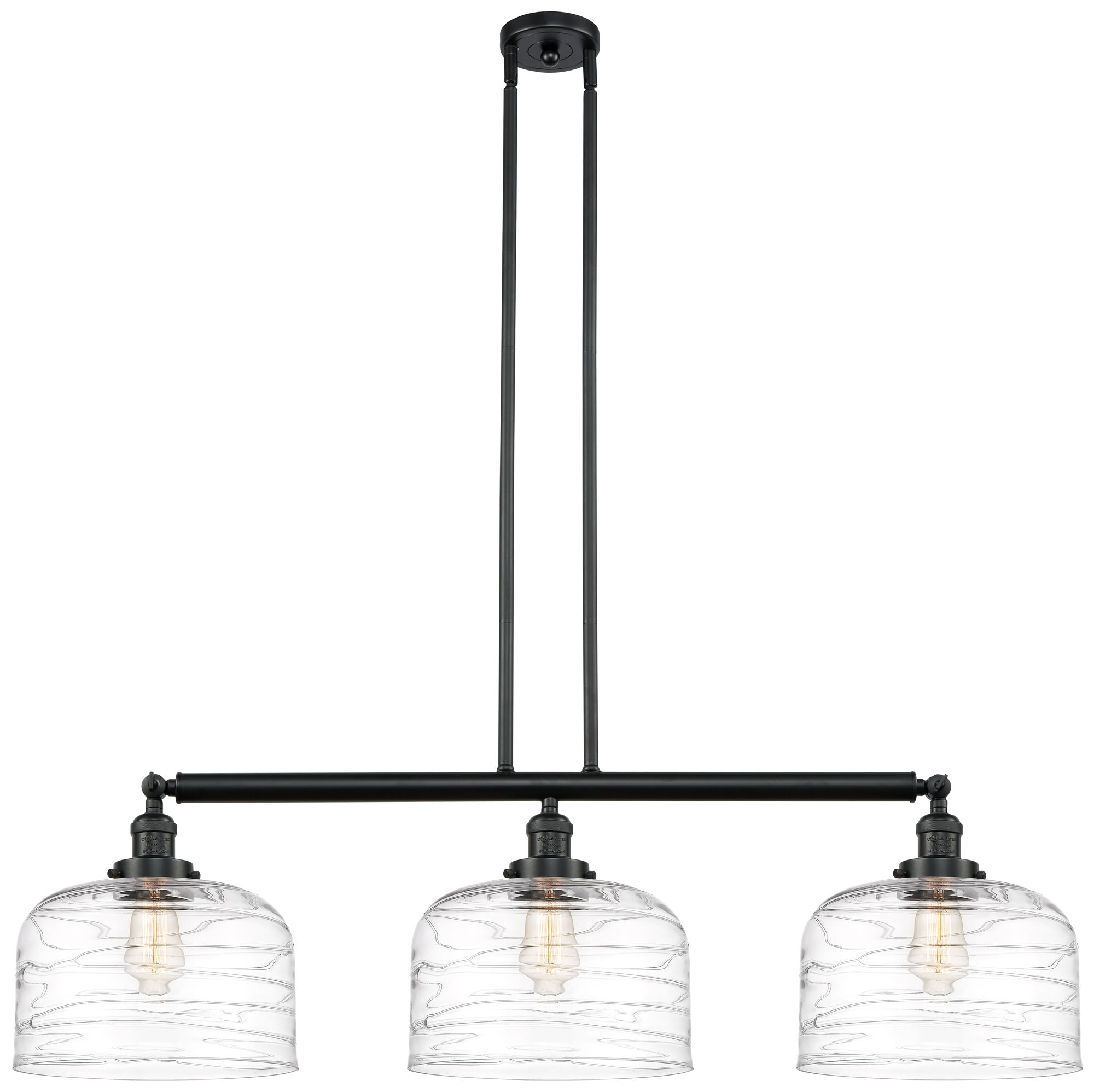 Bell 3 Light 42" LED Island Light - Matte Black - Clear Deco Swirl Sh