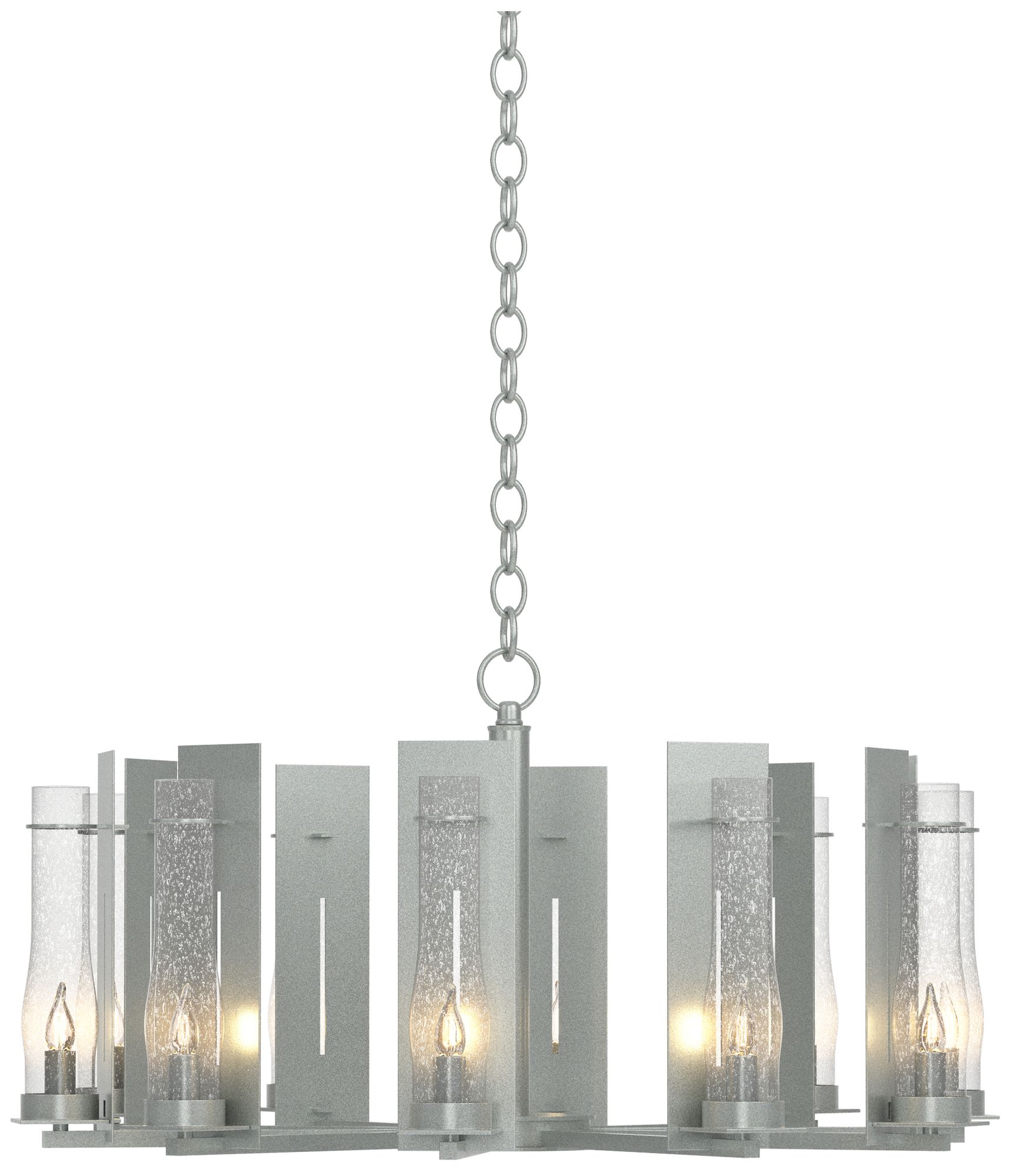 New Town 30"W 10 Arm Vintage Platinum Chandelier With Seeded Clear Gla