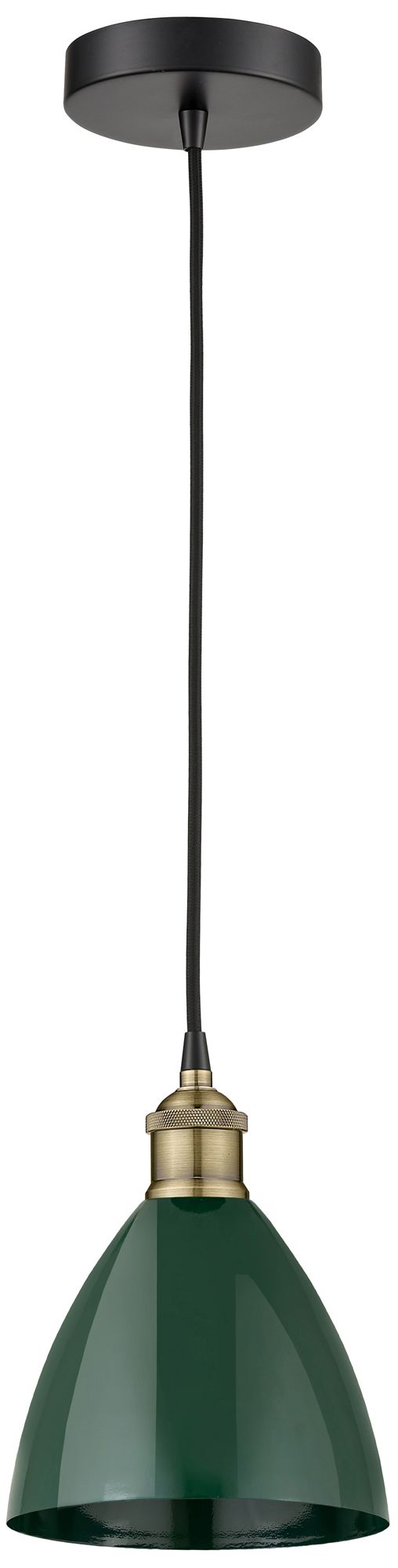Plymouth Dome 7.5"W Black Brass Corded Mini Pendant w/ Green Shade