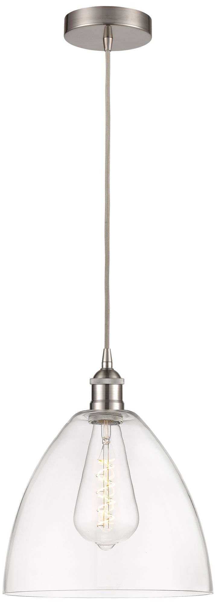 Edison Dome 12" Brushed Satin Nickel Cord Hung Mini Pendant w/ Clear S