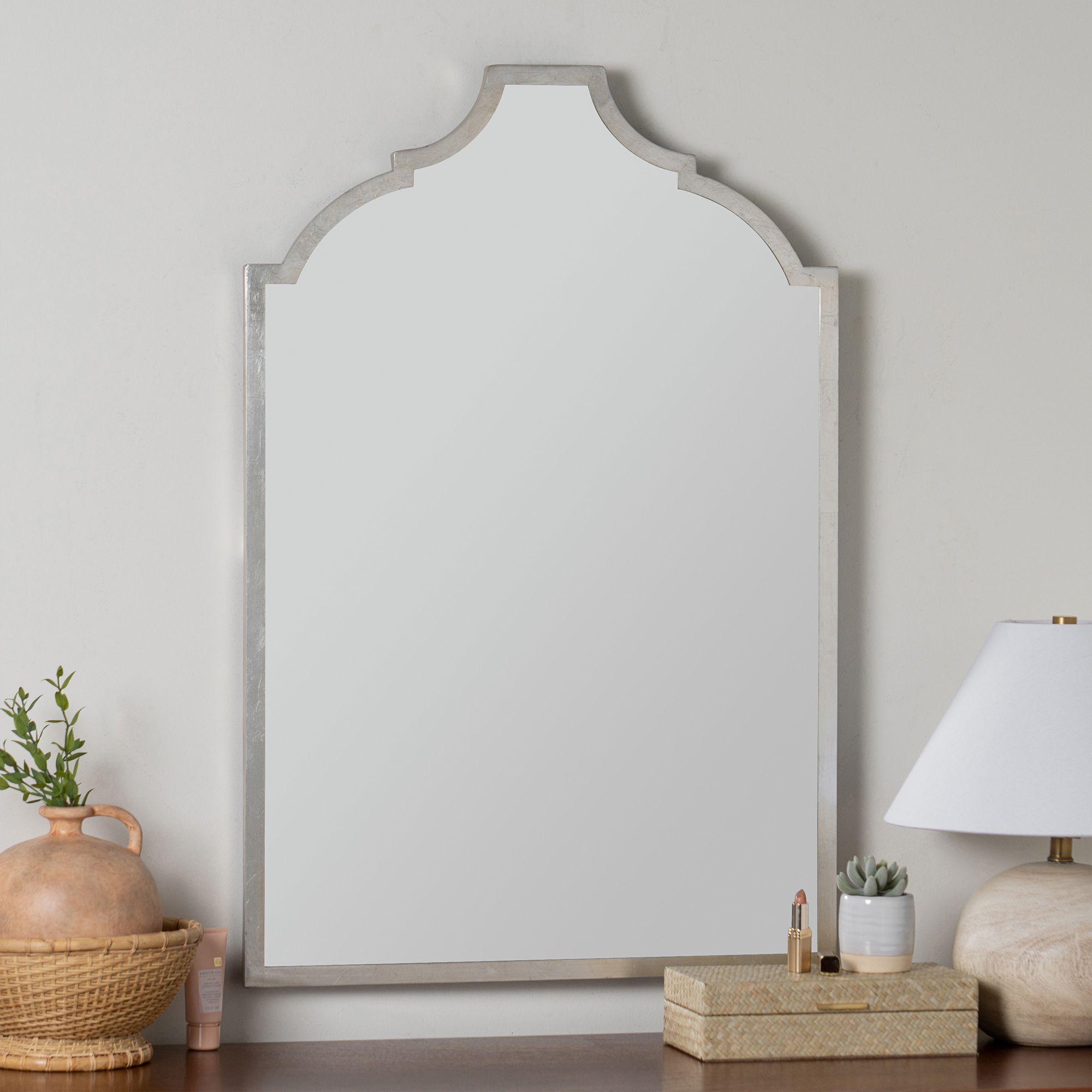 Geneva Shiny Silver 24" x 36" Arched Square Wall Mirror