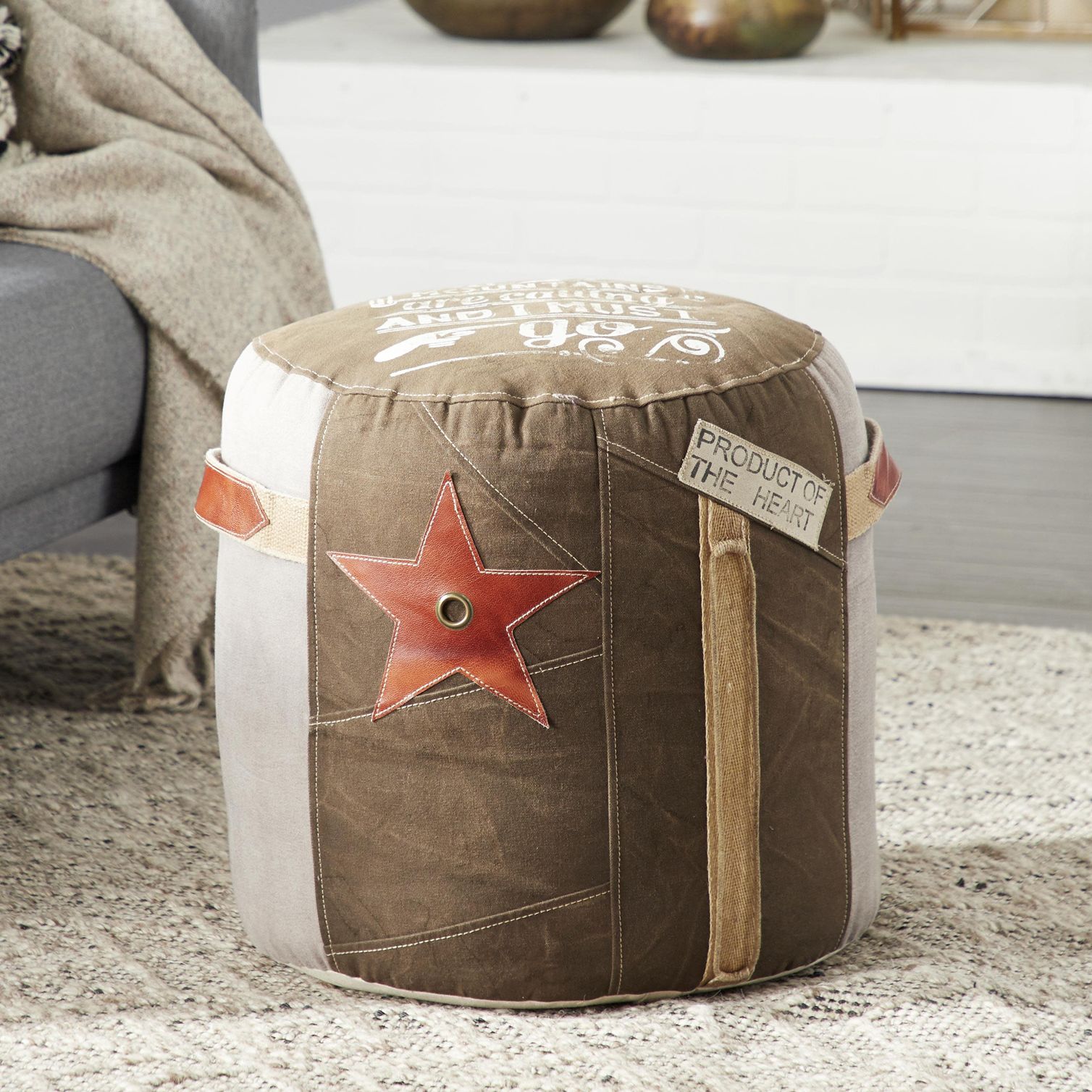 Brown Canvas Rustic Pouf, 17" x 17" x 19"