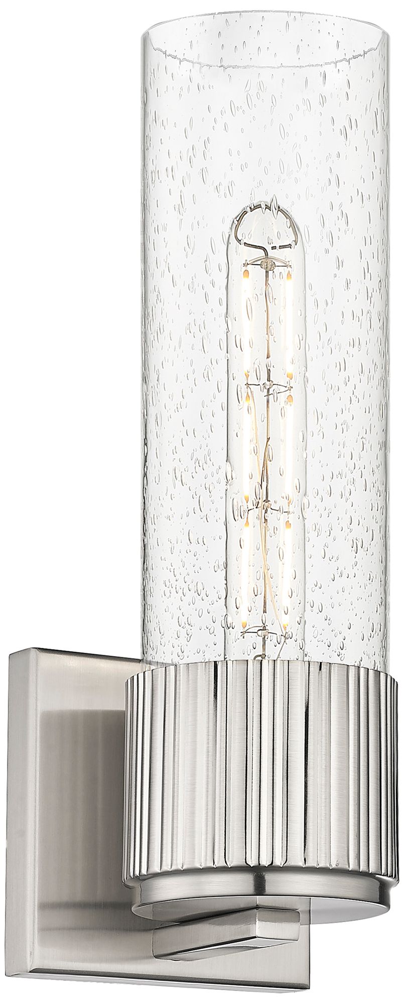 Bolivar 15" High Satin Nickel Sconce With Seedy Glass Shade