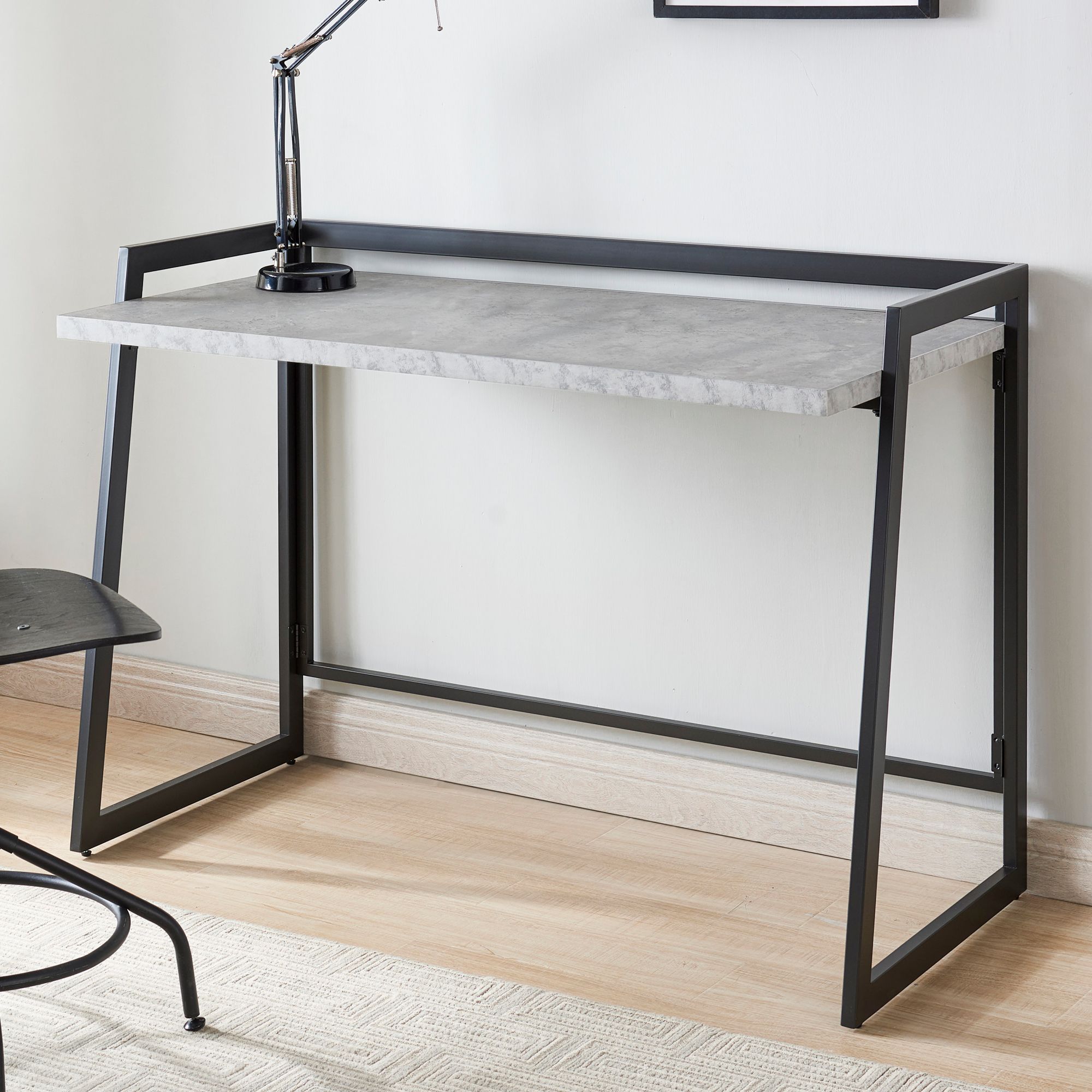 Bartina 48" Wide Faux Concrete Gunmetal Folding Desk