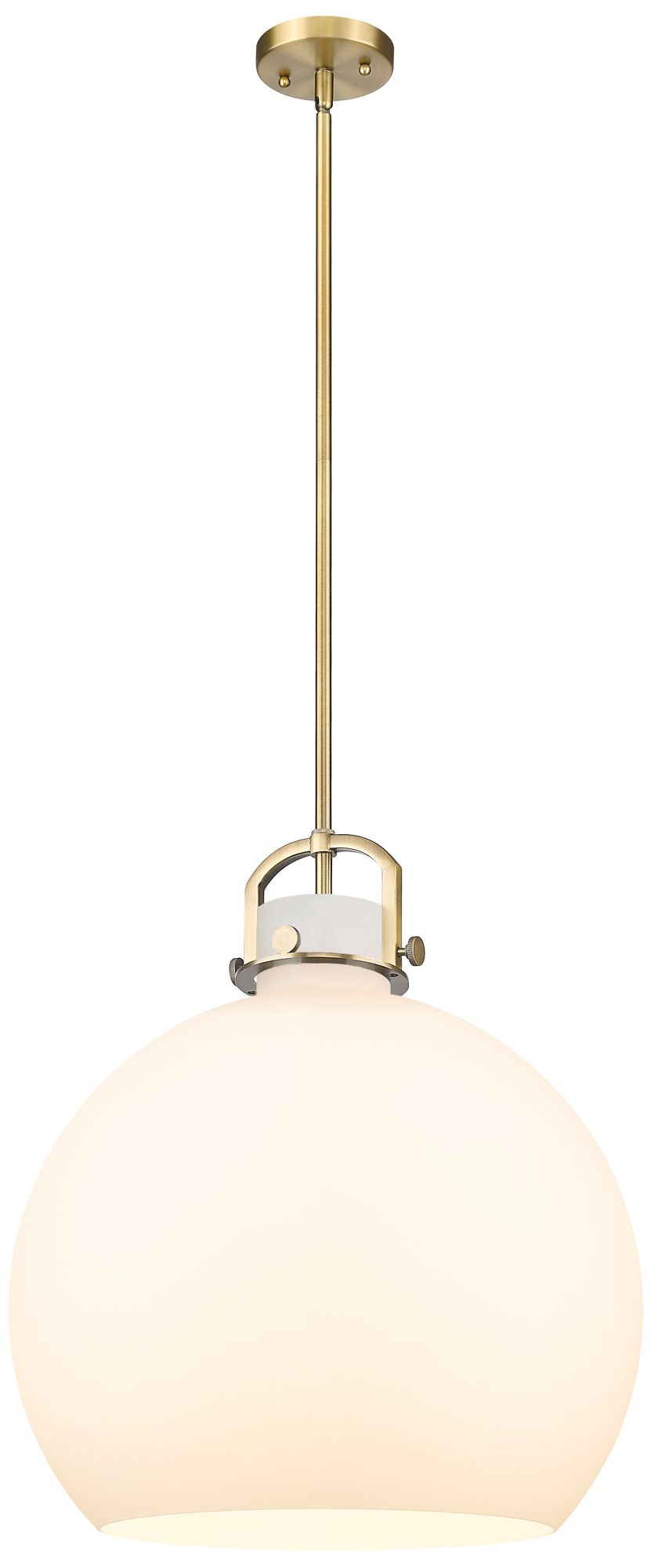 Newton Sphere 18" Wide Stem Hung Brushed Brass Pendant With White Shad