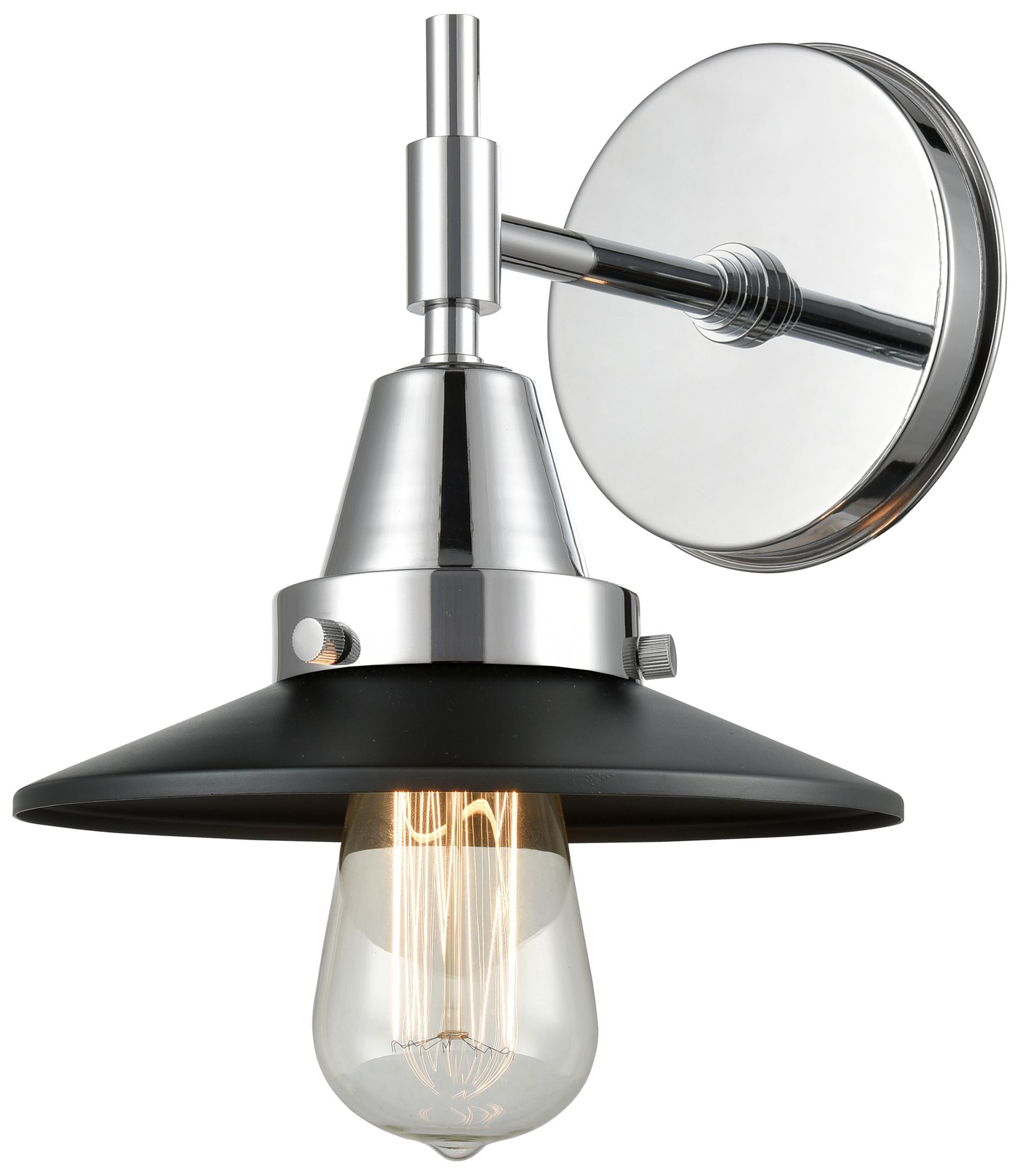 Caden Railroad 7.25" High Polished Chrome Sconce w/ Matte Black Shade