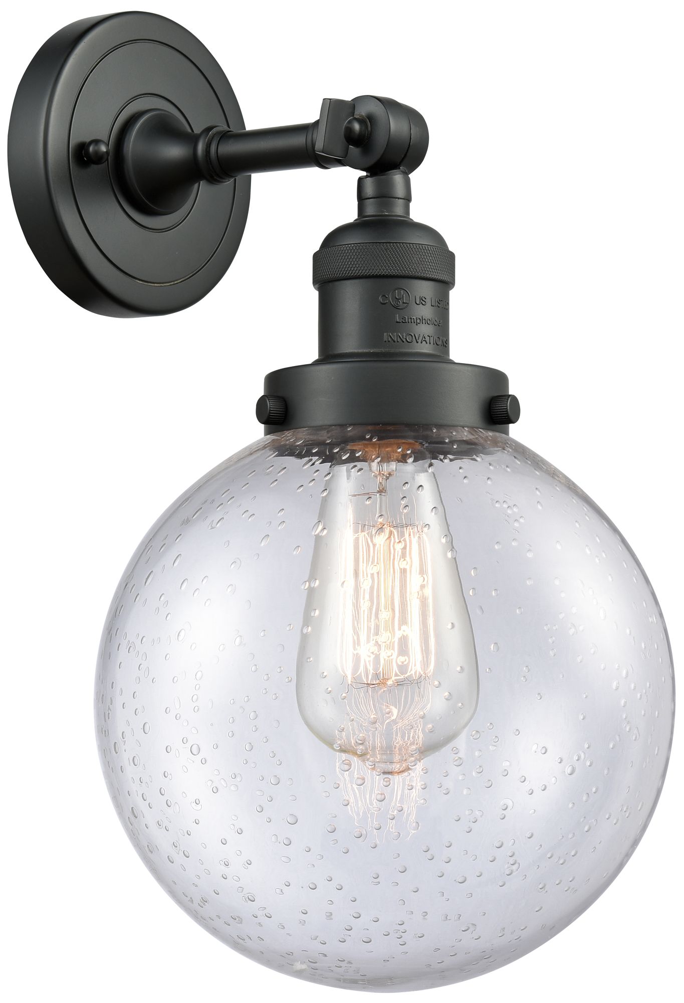 Franklin Restoration Large Beacon 8" Matte Black Sconce w/ Seedy Shade