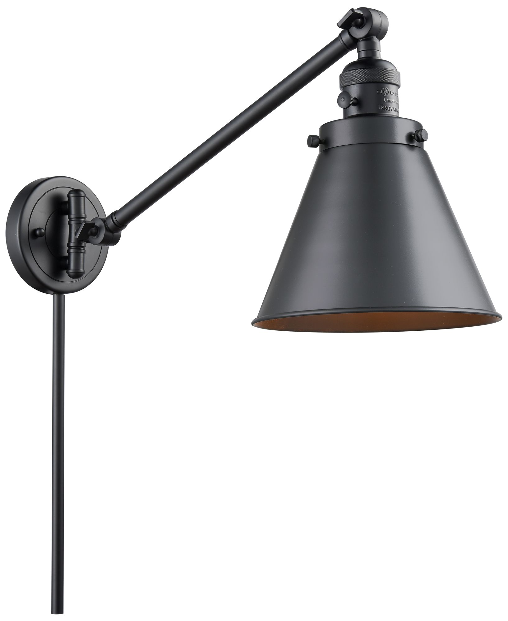 Appalachian 8" Matte Black LED Swing Arm With Matte Black Shade