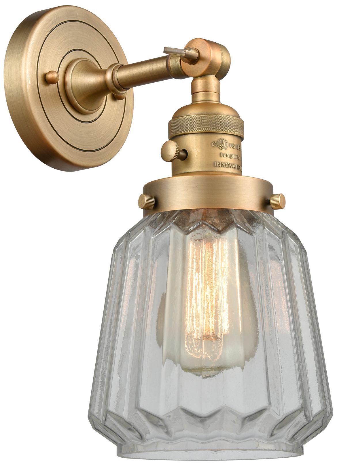 Chatham 12" High Brushed Brass Sconce w/ Clear Shade